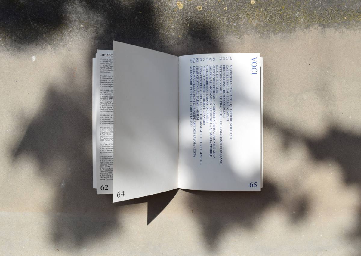 Contributi di: Caterina Borelli, Ubah Cristina Ali Farah, Giulia Barrera, Aster Carpanelli, Maristella Casciato, Anna Cestelli Guidi, Gaia Delpino, Rosa Anna di Lella, Vittorio Longhi, Licia Martella, Zakaria Mohamed Ali, Alessandro Portelli, Eric Salerno, Alessandro Triulzi, Gabriel Tzeggai.