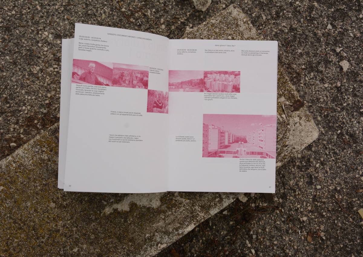 Si scrive San Sisto ma si pronuncia Sansisto, e in origine si chiamava Sansoste. Questo il titolo acustico di un libro-diario che ospita dei "documenti abitanti", raccolti da una ricerca partita appunto dal paesaggio sonoro del quartiere, per svolgere un'indagine urbana dei luoghi e mapparne anche la geografia umana tramite trenta videointerviste ai cittadini. Ne derivano un film documentario e questa pubblicazione, nella quale le voci e le immagini dei residenti sono alternate a testi che si estendono dalla metodologia del laboratorio sul campo all'identità urbana dello spazio pubblico, dalla storia di una comunità sociale alle impronte sonore che percepisce. Quale futuro per un quartiere nato operaio che non si sente solo periferia ma si pensa come 'neopaese' - nonostante le sue problematiche complesse e grazie alla biblioteca e al teatro che ne fanno una città nella città - riflettendo su come progettare una nuova piazza dove ritrovarsi e andare oltre insieme.