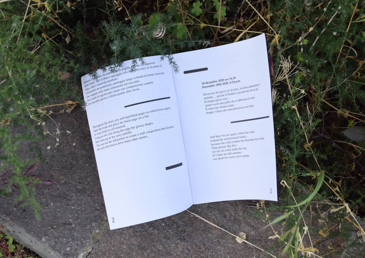 A Week from Monday è una pubblicazione con cd che raccoglie i materiali sonori e visivi della residenza – dallo stesso titolo – organizzata da Viaindustriae e Holydays a Scopoli (PG) nel settembre 2020. È un diario dei sette giorni trascorsi insieme agli artisti visivi Giacomo Infantino e Francesca Ruberto (di cui sono visibili i progetti fotografici nel libro) e ai musicisti Laura Agnusdei, Matteo Pennesi e Luca Sguera (di cui sono ascoltabili i brani su cd) tra indagine sonora, ricerca visiva ed esplorazione dei territori. Il tema emerge dal titolo del progetto, A Week from Monday, che “cita non letteralmente” un libro tecnico di John Cage (A Year from Monday. Lectures and Writings, 1967), un’agenda di lavoro, pensiero, composizione, scrittura e paesaggio della parola. La temporalità del progetto che si è dipanata su sette giorni, corrisponde alle sette tracce e alla scansione giornaliera tipica della narrazione diaristica da cui, però, si emancipa il contenuto vero e proprio che è, invece, una frammentazione composta da un apparato testuale evocativo ma mai descrittivo, dalle fotografie, dalle scansioni di documenti (appunti tecnici sul suono, liste della spesa, menù, appunti, citazioni), in una sovrapposizione grafica che suggerisce connessioni non necessariamente evidenti, in alcuni casi latenti, che possono essere colte o dimenticate.