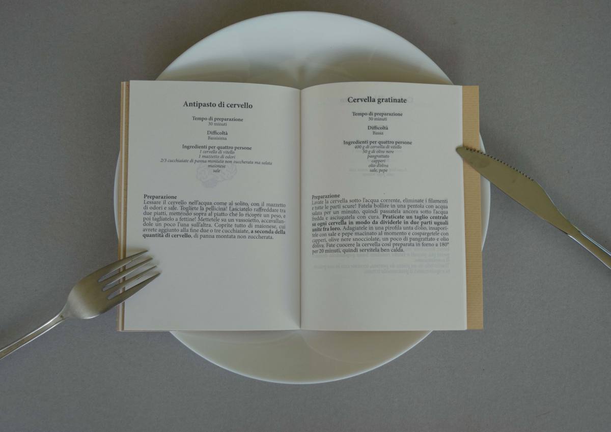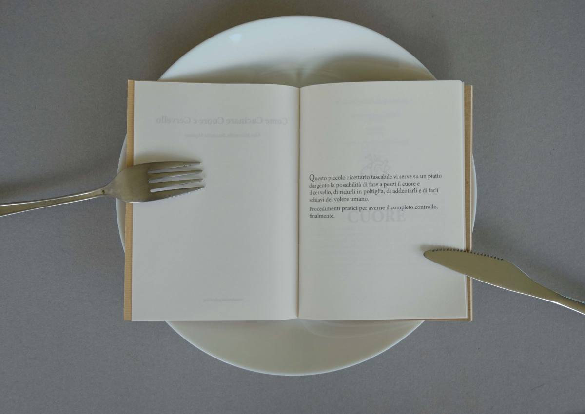 La pubblicazione contiene una selezione di ricette a base di cuore e cervello di vitello, maiale, manzo, dal cuore infarinato con patate e cipolle al cervello al burro nero, dal risotto al cuore alla crema di carciofi e cervello, e un focus su due nuove ricette create dalle autrici, ovvero due pizze, una versione bianca e una versione rossa che vedono come ingredienti principali cuore e cervello. Questo piccolo ricettario tascabile vi serve su un piatto d’argento la possibilità di fare a pezzi il cuore e il cervello, di ridurli in poltiglia, di addentarli e di farli schiavi del volere umano. Procedimenti pratici per averne il completo controllo, finalmente. All’interno un inserto blocco appunti in carta alimentare.