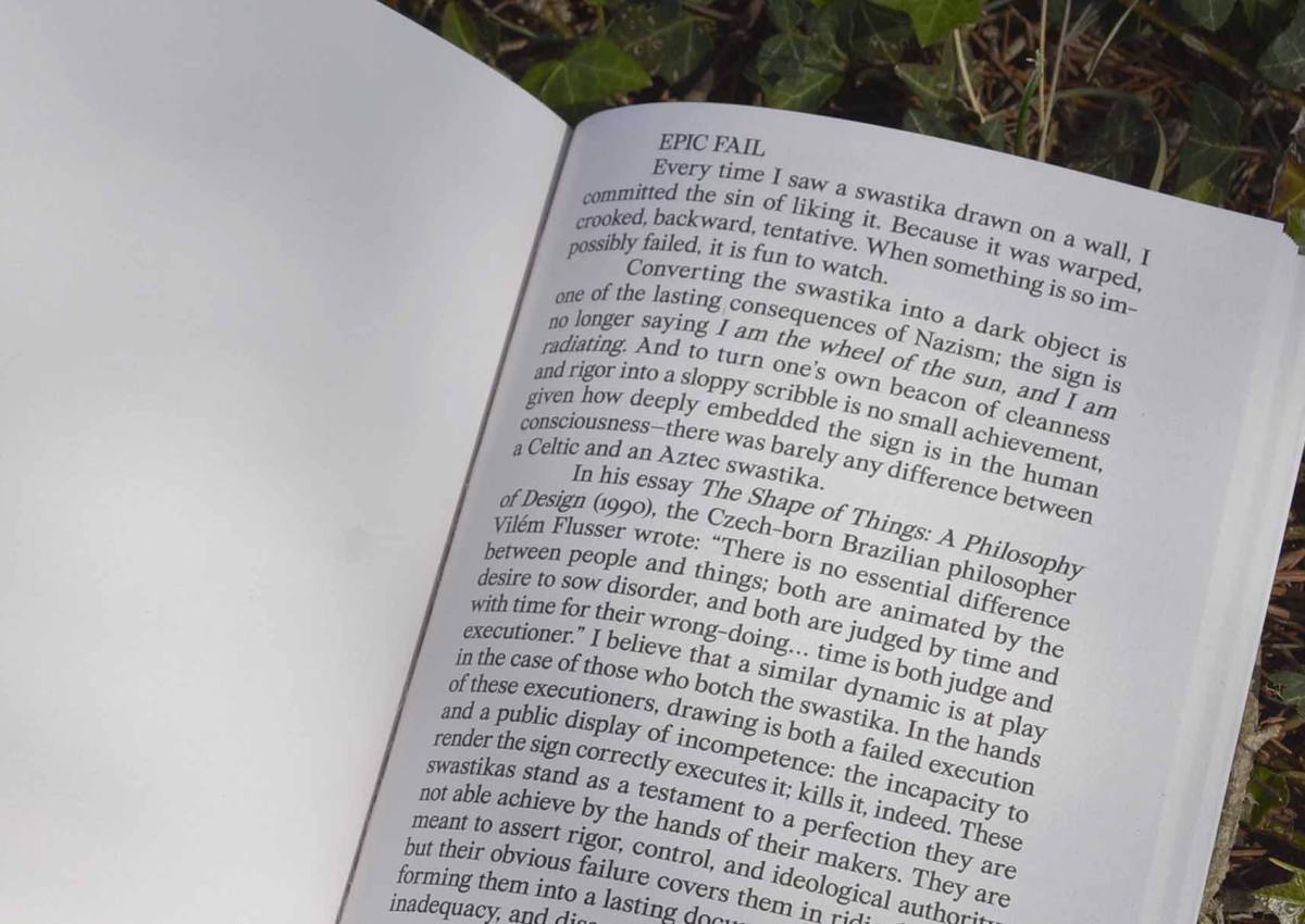 The project is a critical reflection on failure, seen through the presence of badly drawn swastikas on public surfaces across Italy. The result of research conducted between 2009 and 2025, it reflects on how one of the most ancient and widely disseminated symbols—later appropriated by the Nazi regime—is repeatedly drawn incorrectly by those who attempt to reproduce it to assert ideological authority, turning the symbol into an impressive achievement in failure and revealing their makers’ incompetence, thereby undermining the very claims to rigor and control they were meant to convey.