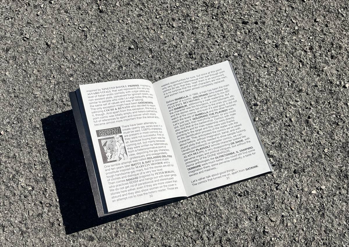 I am Gonzo is a book on Italian erotic-porn comics. Gonzo is the immersive and amateur technique chosen by the authors to collect, analyze and look at erotic-porn comics, a poor and modest form of publication, with sensual papery aesthetcis and a high rate of collectability. Gonzo (dupe) is also a person, the amateur porn addict, usually male (porno-man, homo heroticus), who collects and consumes these enjoyable objects with an animal-like, almost wild atittude. This book attempts to describe a fragmented panorama; it is not about the estabilshed art comics, but about the ‘gonzo’ comics of the reader-lover, who owns and consumes the object and its ‘covetous authorship’, and keeps the issues hidden among more scholarly books.
