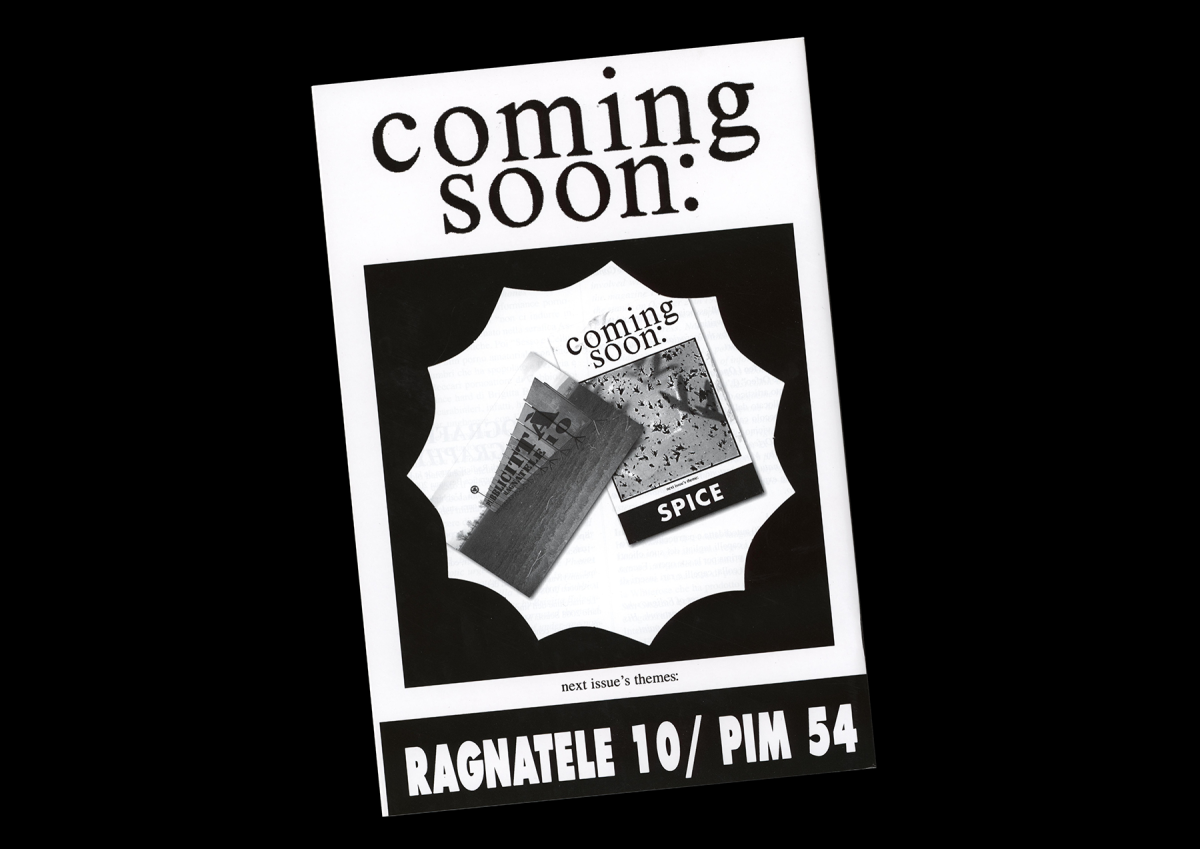 After 53 issues published since 1979 in New York and Umbria, PIM (Public Illumination Magazine), the world’s smallest magazine of its kind (7×11 cm) marches on, continuing to illuminate its select readers with enlightening revelations by its pseudonymonous contributors. This special joint-publication of PIM and Ragnatele retraces the 19 issues of PIM published since its relocation to Umbria in 1987. Covers and sample pages are presented amongst artifacts from its environment. Universal yet particular, the nourishing peculiarity of Umbria has proven a happy home for this collaboration. These two magazines have joined characters and dimensions to produce a hybrid publication in an act of cross-fertilization.