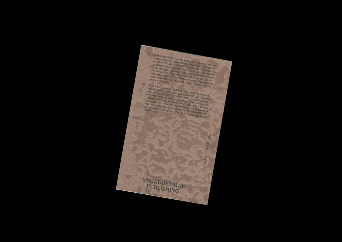 In late 2022, Helena Hladilová was invited to a research-based residency promoted by Pinacoteca G.A. Lev is and curated by ARTECO and CRIPTA 747, to realise a project that dialogues with the territory of the Susa Valley. Interested in the world of handicrafts, from weaving techniques to stone cutting, Hladilová has approached the traditions of popular folklore and the intangible narratives - through history - hand down legends and mythologies.