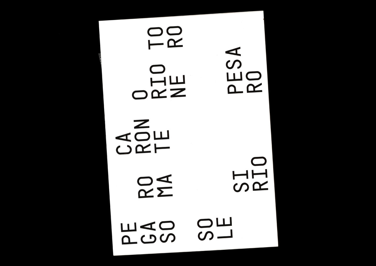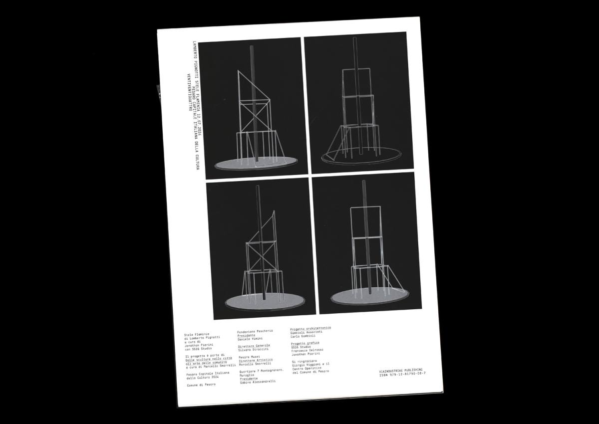 For visual poetry, the street represents the natural setting for continuing a guerrilla effort aimed at appropriating the messages of mass communication, modifying them, and returning them to the sender with the goal of dismantling the mechanisms of rapid information consumption that rely on the observer’s passivity. Today’s street has lost its function as a public space, becoming instead an infrastructure for transit and support. In addition to the themes of fast and inattentive consumption, there is also the issue of inaccessibility, both physical and symbolic. The installation Stele Flaminia, created by Lamberto Pignotti and curated by Jonathan Pierini with SS16 Studio for Pesaro Italian Capital of Culture 2024, attempts to generate a moment of surprise, challenging our ability to decode urban, personal, and imaginative languages. Composed of scaffolding pipes and TNT clothes, and positioned in a roundabout—an antithesis to the post station that once served as a space for social and political interaction—it stands as a contemporary stele, at once exceptional and ephemeral, contradictory and ironic.The publication includes three graphic works and a series of critical texts.
