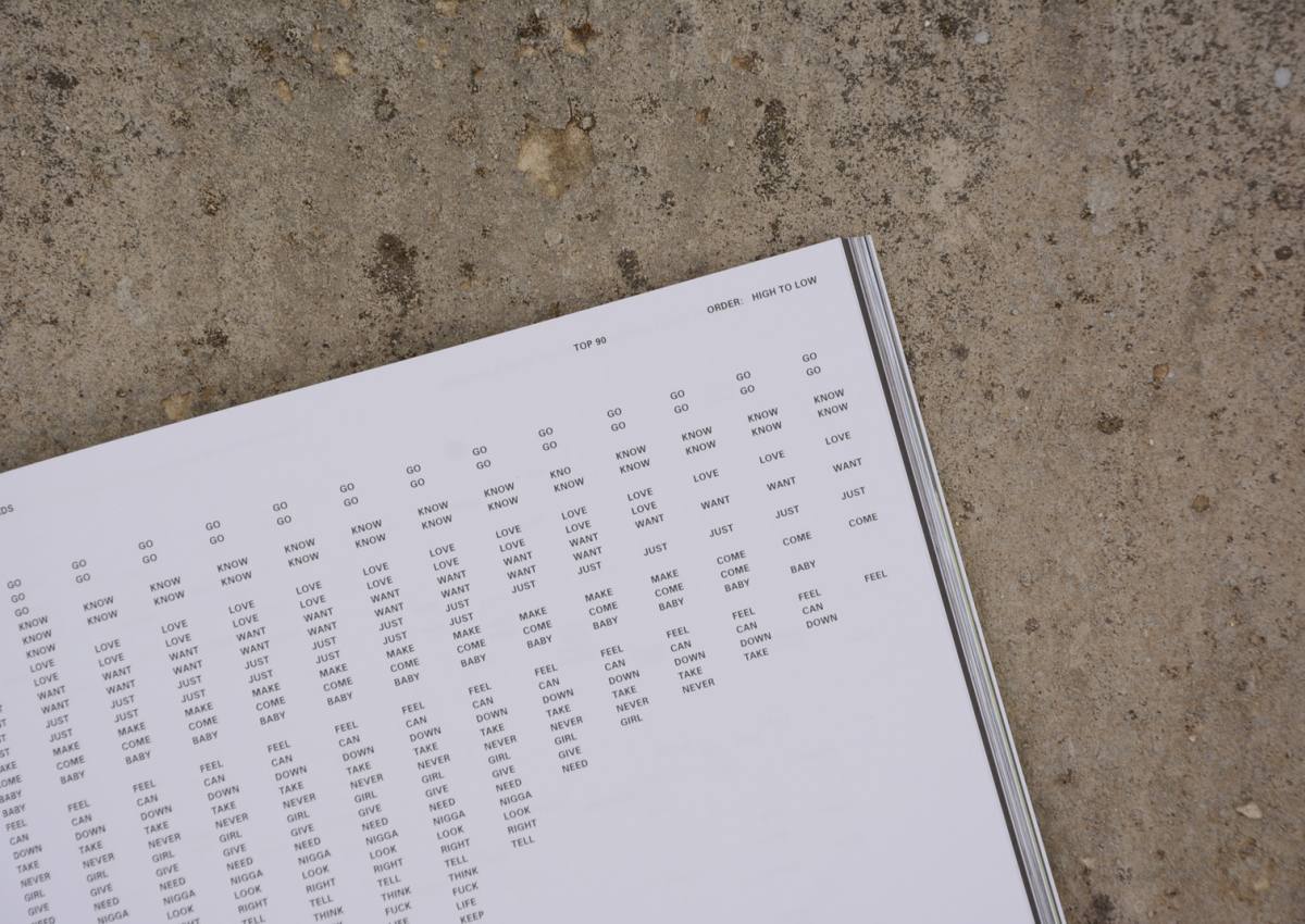 SUPERIMPOSITION explores the concept of earworms – those sonic agents that coercively graft themselves onto the brain until they become parasites and provoke mechanisms of cognitive control. Already known at the end of the 19th century, the phenomena were later defined as brainworms by Oliver Sacks. Sound worms are linked to mass culture such as pop music, advertisements, video games and TV theme songs. They also inhabit airports, bars, shops, gyms and shopping centres, and are characterised by sequences of redundant melodies that are difficult to escape. Recognising these mechanisms is complex, due to a weak, if not absent, general education in listening. Based on this research, SUPERIMPOSITION launched a data analysis of more than 10.000 music tracks featured in the popular international charts from 2000 to 2022. This analysis - which is based on the quantity and repetitiveness of the music – has been automated with a specially developed software. Algorithms and data analysis techniques were used to select the most characteristic lyrics. Their mathematically generated superimposition composes the work